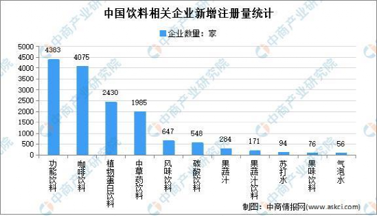 據(jù)中商情報(bào)網(wǎng)整理數(shù)據(jù)顯示,數(shù)千億的飲品市場,早在2018年就呈現(xiàn)爆發(fā)式增長,2020年時(shí),新注冊的功能飲料企業(yè)數(shù)量達(dá)4383家,是除茶飲外,進(jìn)場企業(yè)數(shù)量最多,增速最快的品類,而植物蛋白飲料品類僅次于功能飲料和咖啡飲料品類居于第三,注冊企業(yè)多達(dá)2430家,成為國內(nèi)飲品市場一大風(fēng)口。