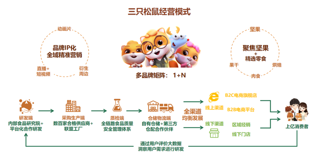 值得一提的是,三只松鼠還發(fā)布了《關于全面推進戰(zhàn)略轉型升級、邁向高質(zhì)量發(fā)展的重要公告》,該公告明確未來十年,三只松鼠的戰(zhàn)略方向為“聚焦堅果產(chǎn)業(yè),打造多品牌模式,逐步向健康化、數(shù)字化、全球化邁進”。