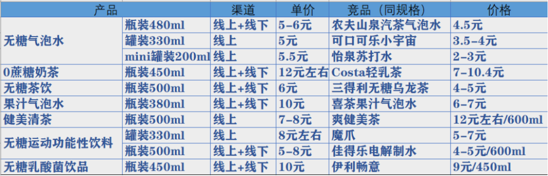 圖:元氣森林與競品價格對比(由新眸繪制)