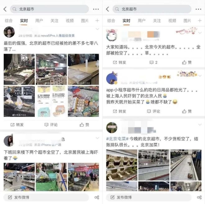 根據(jù)《證券日報》《中國商報》等媒體報道,4月25日,北京市北苑地區(qū)華貿(mào)城品超市、十里堡等部分超市存在蔬菜、肉蛋奶售空的情況,甚至有超市門口出現(xiàn)美團(tuán)、餓了么等跑腿外賣小哥排隊代購物資的情況。物美品超市(菜百店)內(nèi),果蔬、干貨、冷藏區(qū)、方便食品、面粉等商品區(qū)域出現(xiàn)了空架的現(xiàn)象。