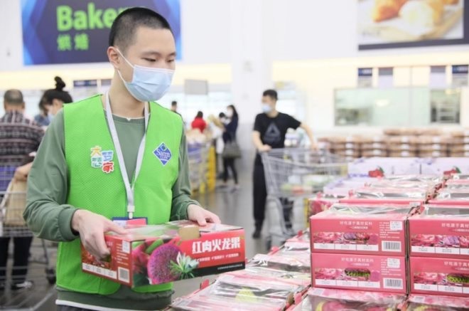 配圖說明:心青年在山姆店的果蔬區(qū)工作