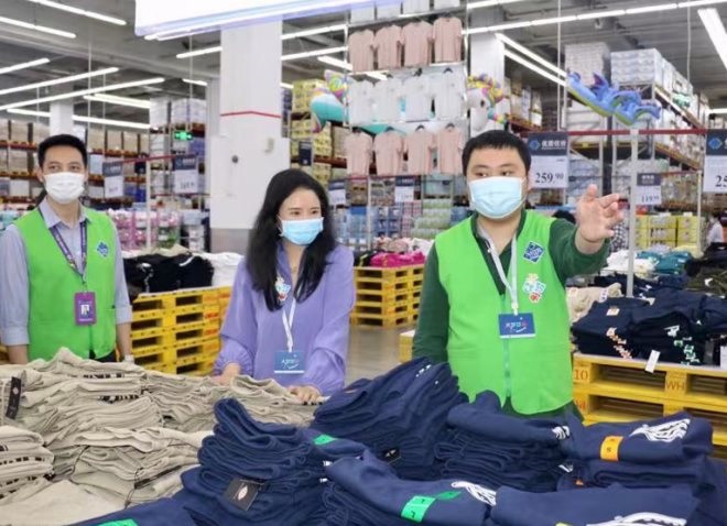 配圖說明:沃爾瑪中國總裁及首席執(zhí)行官朱曉靜陪伴和支持心青年們在門店的工作
