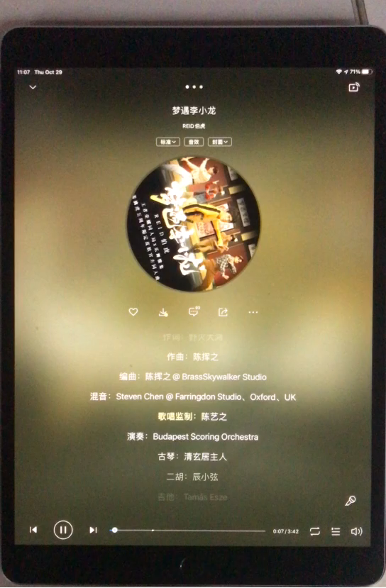 2020年10月,酷狗音樂iPad版更新了播放界面,新增黑膠界面設計與網(wǎng)易云音樂黑膠播放界面極度相似。