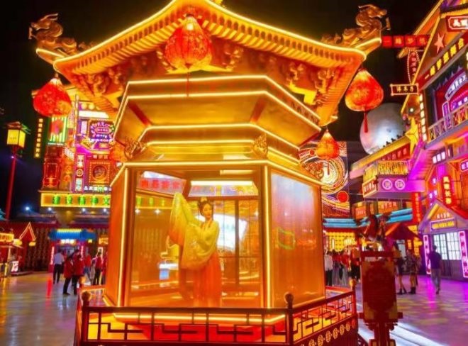 2021年9月10日,一峰集團(tuán)精心打造的城市級網(wǎng)紅版文旅商業(yè)街示范區(qū)正式亮相,引發(fā)全城轟動(dòng)效應(yīng)。整個(gè)示范街區(qū)匯集中國年代風(fēng)情、周口歷史文化、互動(dòng)仿真美陳、智能夜游、衍生文創(chuàng)、景觀打卡等多元化于一體,圍繞河南歷史文化和地域文化,運(yùn)用機(jī)械、模擬仿真、影像互動(dòng)、燈光水霧等多項(xiàng)創(chuàng)新科技,實(shí)現(xiàn)科技與藝術(shù),現(xiàn)代與復(fù)古的完美融合,似真似幻沉浸式場景空間。這一特色空間的打造,以觸動(dòng)年輕人的高顏值,成為城市年輕人、潮人和各大KOL的熱門打卡地,更是一次商業(yè)場景打造的迭代升級。