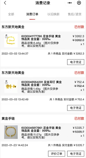 “消費者在我們這兒下單后,我們會常年提供以舊換新的換購服務(wù),這類一口價黃金首飾,我們都是按照購買價格,支持消費者用舊金飾,依據(jù)一定的折舊或加工公式,在門店換購全新的黃金飾品!蓖醴颊f。