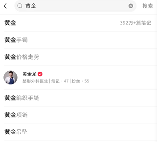 圖 / 小紅書搜索黃金關(guān)鍵詞有392萬+篇筆記