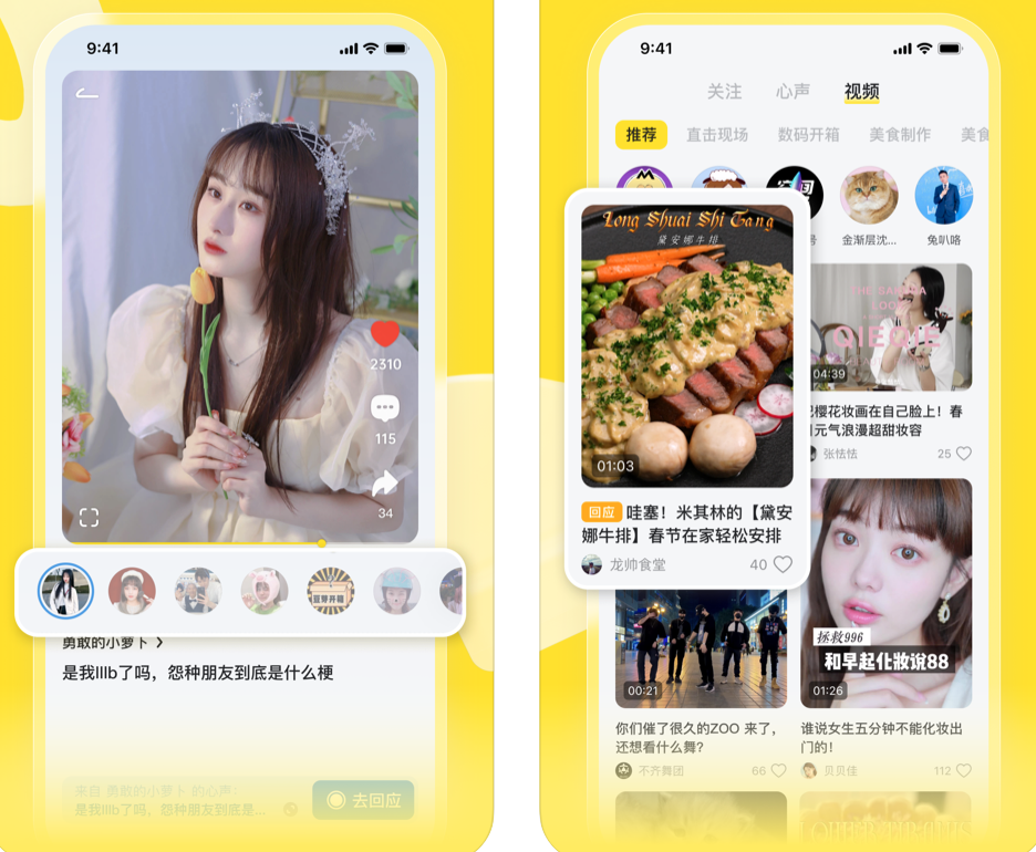在發(fā)現(xiàn)頁(yè),主要展示生活類短視頻內(nèi)容。用戶可以在“彼應(yīng)”內(nèi)分享星座占卜、學(xué)習(xí)成長(zhǎng)、極限運(yùn)動(dòng)、生活美食、時(shí)事新聞、科技數(shù)碼、旅游攻略、潮流穿搭等視頻內(nèi)容。其他用戶可以對(duì)這些短視頻內(nèi)容進(jìn)行點(diǎn)贊、轉(zhuǎn)發(fā)以及評(píng)論等操作。據(jù)官方介紹,每天都有上千萬(wàn)人在這里分享經(jīng)驗(yàn)。