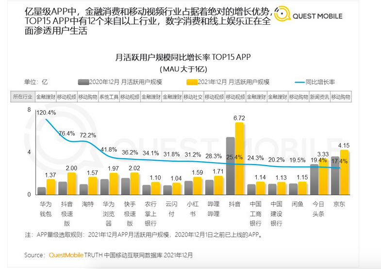 在用戶增長(zhǎng)方面,小紅書(shū)取得了不錯(cuò)的成績(jī)。據(jù)QuestMobile發(fā)布的2021年中國(guó)移動(dòng)互聯(lián)網(wǎng)年度大報(bào)告顯示,在億量級(jí)APP中,小紅書(shū)的月活增長(zhǎng)速度僅次于抖音極速版、快手極速版,超過(guò)了嗶哩嗶哩抖音主App。
