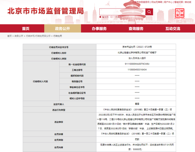 為此,3月6日,北京市豐臺區(qū)市場監(jiān)督管理局沒收其違法所得337.01元,罰款5萬元。