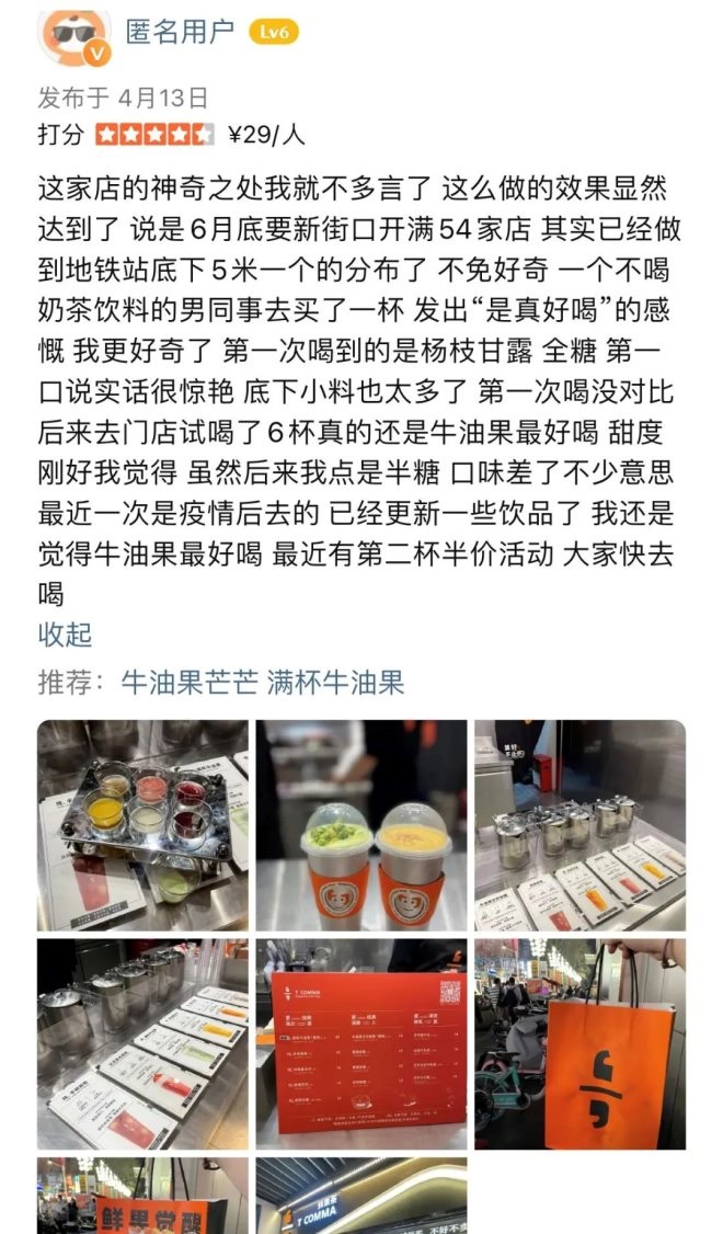 當天,阿晨品嘗了T COMMA的牛油果芒芒輕酪,口感不錯,能夠喝出很濃的水果味。此外,根據(jù)大眾點評消息,網(wǎng)友對于T COMMA的評價也有好有壞。