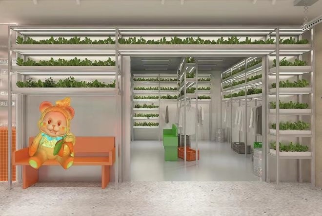 店內(nèi)改用綠色環(huán)保的設(shè)計理念,圍繞eco-friendly的概念進(jìn)行店鋪設(shè)計,在店內(nèi)鋪設(shè)大量的水培植物,使植物呼吸與工業(yè)氛圍無縫銜接。