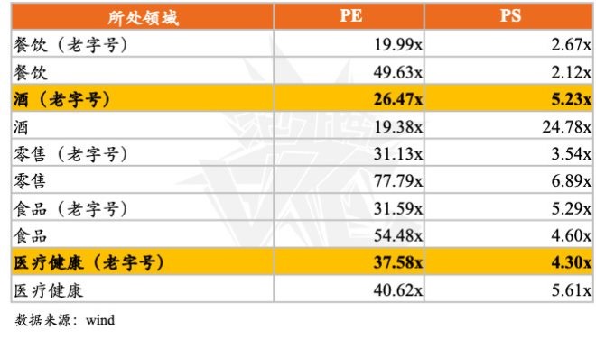 縱觀老字號品牌的估值指標(biāo),我們可以發(fā)現(xiàn):