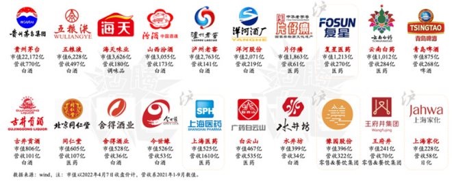 從市值來看,TOP 20的公司里,酒類企業(yè)是當(dāng)之無愧的魁首,占比高達(dá)50%:排名第一的貴州茅臺市值超過2萬億,基本是第二名五糧液市值(6,228億元)的3倍以上;其次是醫(yī)藥健康類公司,占比約25%:復(fù)星醫(yī)藥、上海醫(yī)藥作為上海的知名醫(yī)藥公司,控股投資了一些老字號藥鋪,保持著積極向上的發(fā)展趨勢。