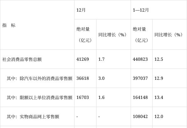 2021年12月份社會(huì)消費(fèi)品零售總額主要數(shù)據(jù)