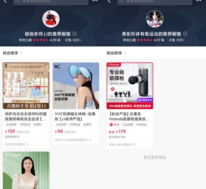 在抖音上,隨意點開直播榜上上榜的運動博主,即使粉絲量極高,其櫥窗內(nèi)帶貨產(chǎn)品寥寥無幾。