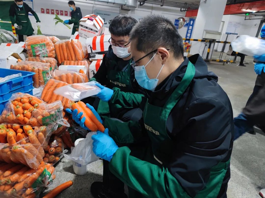 遇到配送運力不足的情況,大家就自發(fā)組成“配送小隊”,在嚴格落實各項防疫措施的前提下,輪班為群眾配送物資,奔波往返于各個社區(qū)與門店之間,身體力行構(gòu)筑起守護市民安全的堅固屏障。作為部分管控社區(qū)的定點保供單位,銀座廣場店的員工們每天至少送貨四次,送完貨又一刻不停歇地趕回店里,準備第二天的接貨上菜、預包裝,在這滿負荷的一天里,他們見過早晨五六點的太陽,也吹過后半夜的晚風,始終以強烈的使命感與責任感守護萬家燈火、安樂祥和。