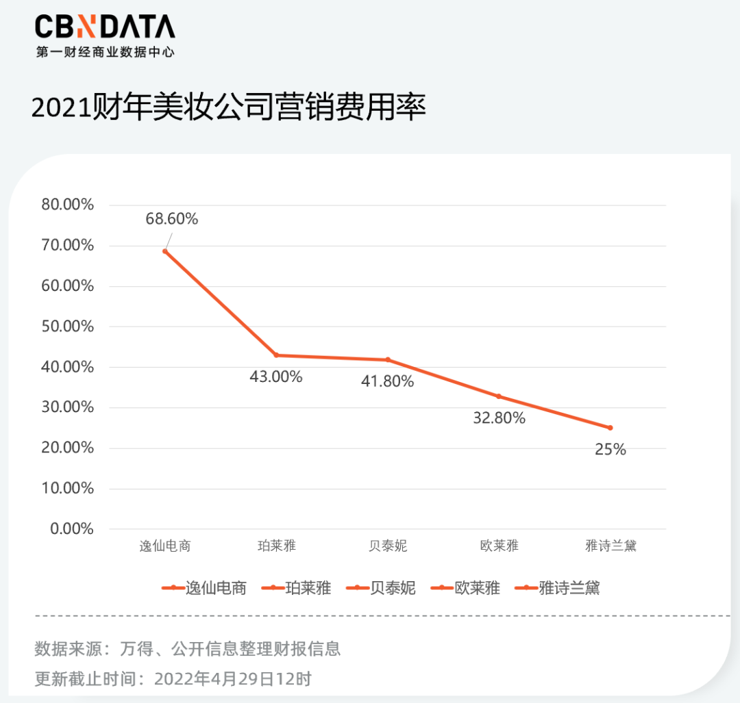 根據(jù)國(guó)泰君安提供的研報(bào)數(shù)據(jù),逸仙電商的營(yíng)銷費(fèi)用占比在同行中較高: