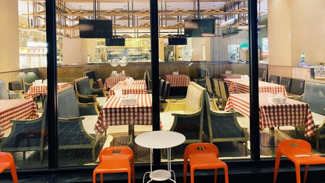 很多店都關(guān)著燈,等位的座椅幾乎空無一人,拍攝:周超臣