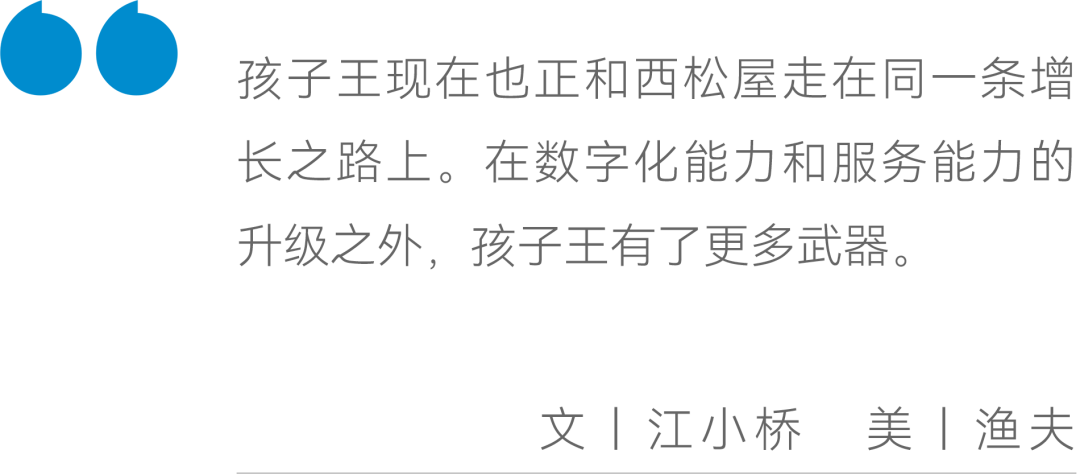 而孩子王現(xiàn)在也正和西松屋走在同一條增長之路上。在數(shù)字化能力和服務(wù)能力的升級之外,孩子王有了更多武器。