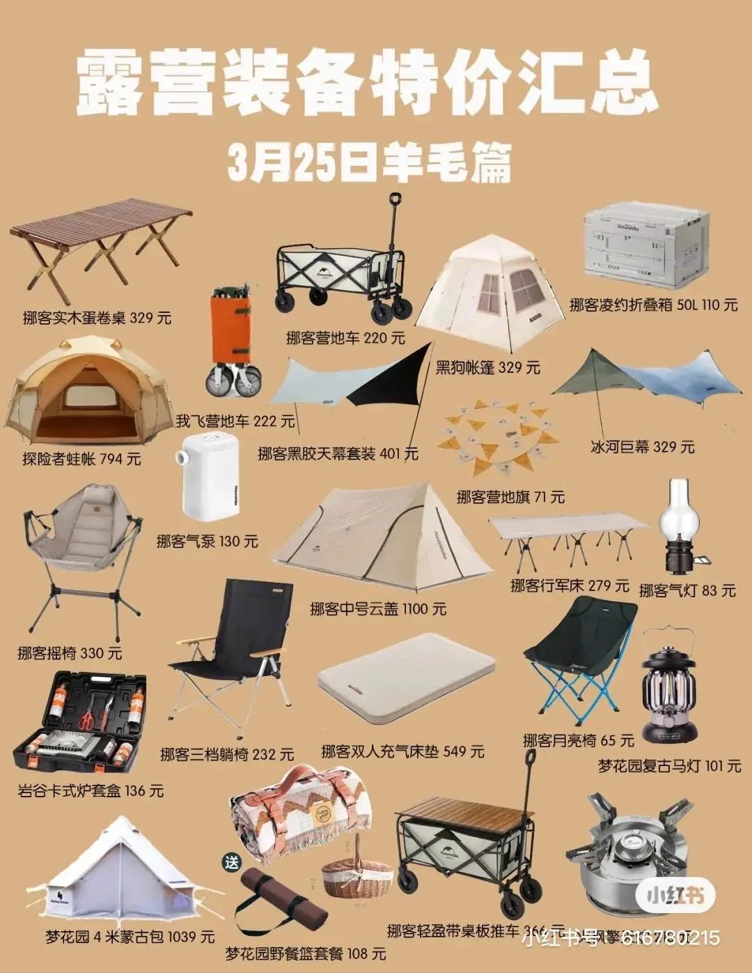 在小紅書上相關(guān)推薦的露營(yíng)裝備清單,種類頗多,稍微置辦下都要大幾千。露營(yíng)裝備的全面升級(jí)自然離不開露營(yíng)餐的全面提升。