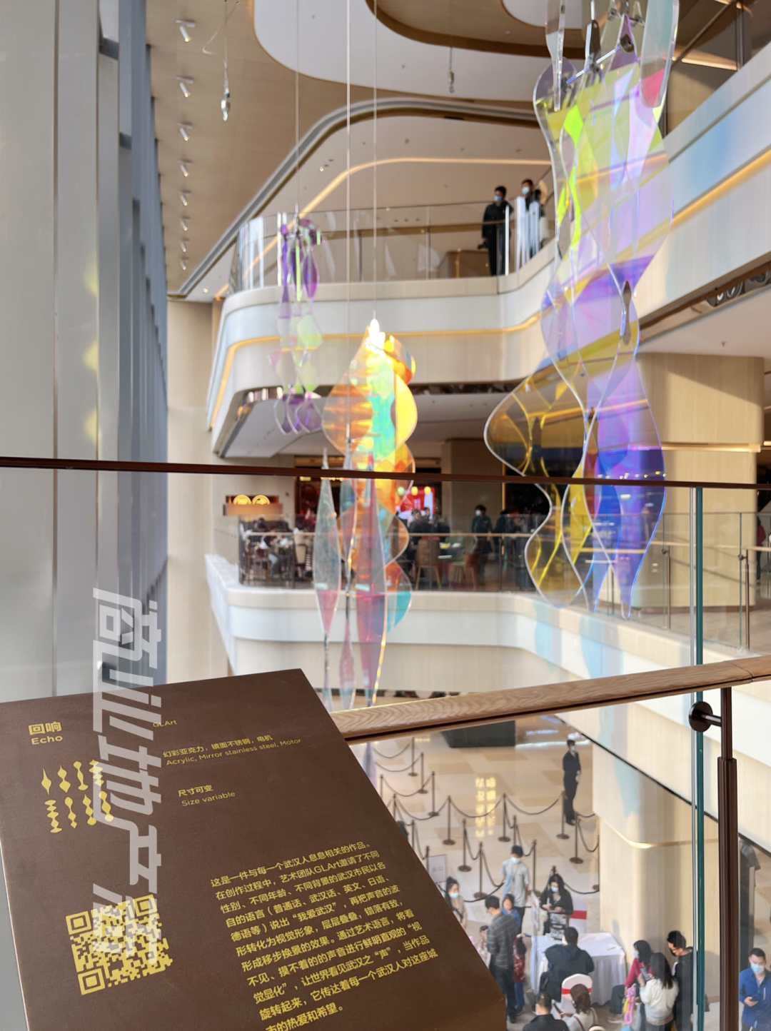 「回響」是藝術(shù)團隊GLArt邀請不同性別、年齡和背景的武漢市民以各自的語言說出「我愛武漢」,再把聲音的波形轉(zhuǎn)化為視覺形象的永久藝術(shù)裝置,讓世界看見「武漢之聲」。