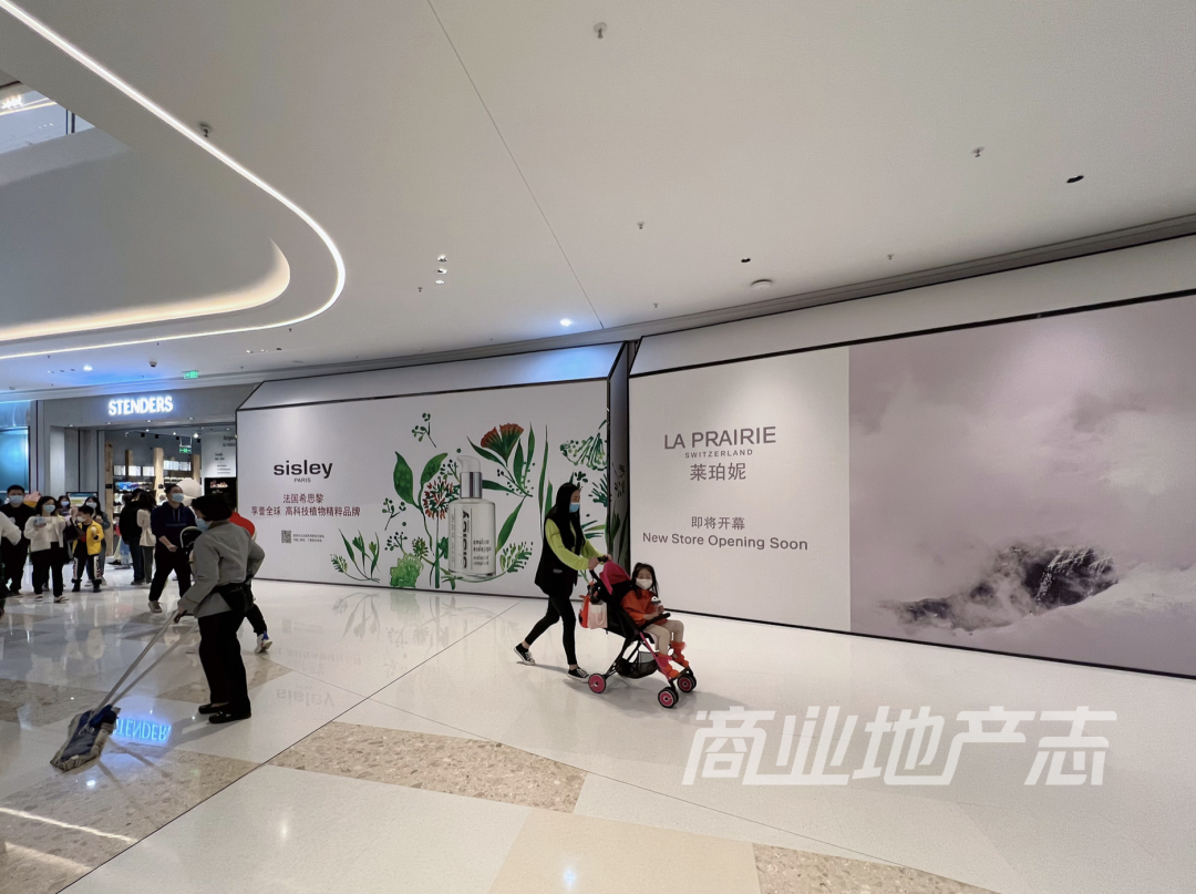 但目前美妝區(qū)受疫情影響開業(yè)率較低,大多是圍擋(見上組圖),就算開業(yè)了,貨品也是嚴重不足