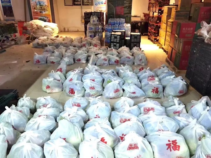 4月19日中午,從百大合家福購物超市南崗惠園店里,一批批物資被送出,一場接力賽開始了......