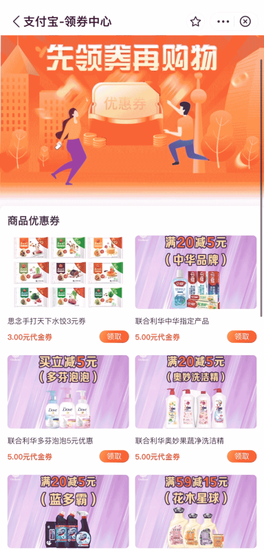 為了讓顧客選購到更多實惠的優(yōu)質(zhì)商品,中皖知托付從商品交易鏈路、補貼額度等方面進行綜合考量,聯(lián)合伊利、思念、奧妙、上海家化、舒膚佳等多家優(yōu)質(zhì)品牌,幫助商家搭建出了一套高效的派券體系,并布局專屬品牌優(yōu)惠券,根據(jù)百姓的物資需求情況,嚴選把關(guān),提升商家在商品側(cè)的服務(wù)體驗。顧客通過支付寶、微信進入商家小程序領(lǐng)券核銷,選購商品時,即可享受不同的品牌優(yōu)惠福利。