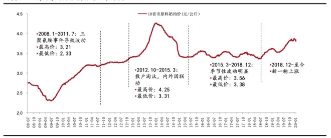 我國原奶價(jià)格波動的四個(gè)階段,圖源:方正證券