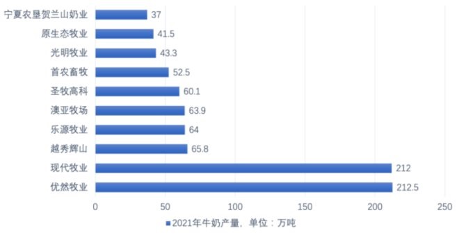 2021中國奶牛養(yǎng)殖Top10牧業(yè)集團(tuán)牛奶產(chǎn)量,部分為估計(jì)數(shù)。數(shù)據(jù)來源:荷斯坦