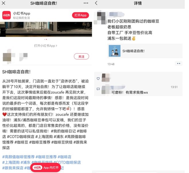 “我們不能說這個東西,對于誰來說不是必需品,對于誰來說是必需品。每個人都是不同的,就像今天要是四川人,也許就要去買火鍋底料了,這和城市的經(jīng)濟(jì)、文化都是息息相關(guān)的。在上海,咖啡就是一個非常繁榮的產(chǎn)業(yè),有它穩(wěn)定的客戶群體!币婚_始是解決個人需求,后來是鄰里之間互相幫忙,到五一過后,一家個體經(jīng)營的咖啡品牌從小紅書找上了貓哥和咕咕,“小的實體企業(yè)更艱難,我們現(xiàn)在也是能幫一點是一點,幫他們做一些擴(kuò)散!