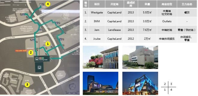 圖,裕廊東Jurong East地鐵站周邊商業(yè)設(shè)施情況,資料來源:網(wǎng)絡(luò)、實地踏勘