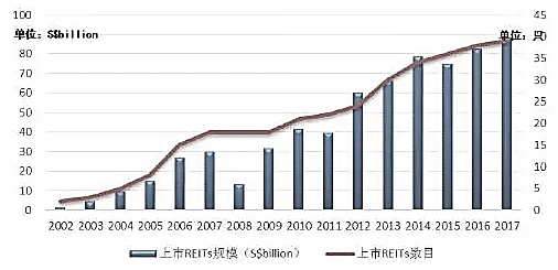 新加坡是亞洲繼日本之后第二個推出REITs的國家,也是亞洲第二大REITs市場。截止2017年3月,新加坡交易所存續(xù)39支REITs,存續(xù)規(guī)模849.2億新元。(圖10)