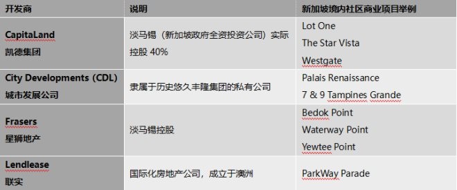 圖,新加坡社區(qū)商業(yè)的主要開發(fā)商及代表項目,資料來源:網(wǎng)絡(luò)