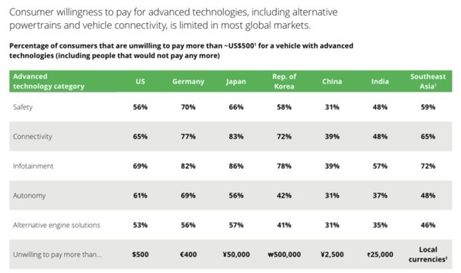 理論上來說,在國內(nèi)推行軟件付費(fèi)模式,是一條極為艱難的路。要知道,在國內(nèi)有很多人連看電影都不愿意花9.9元,你讓他們?nèi)セ◣兹f元買一個(gè)車輛功能,難度可想而知。此前,據(jù)德勤公布的報(bào)告顯示,全球范圍內(nèi)的消費(fèi)者對(duì)于汽車上先進(jìn)科技的付費(fèi)意愿都很有限。尤其是中國,如果金額超過2500元的話,中國的用戶就不太會(huì)愿意去為這項(xiàng)先進(jìn)科技付費(fèi)。