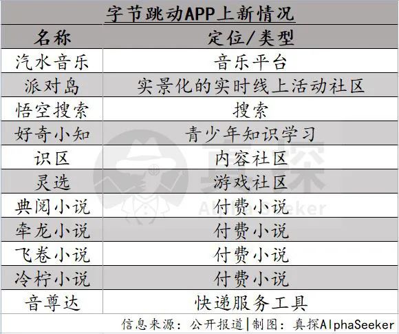 據(jù)不完全統(tǒng)計,自今年年初開始字節(jié)跳動共計上新11款產(chǎn)品,主要涉及了音樂、社區(qū)、小說等多個方向。