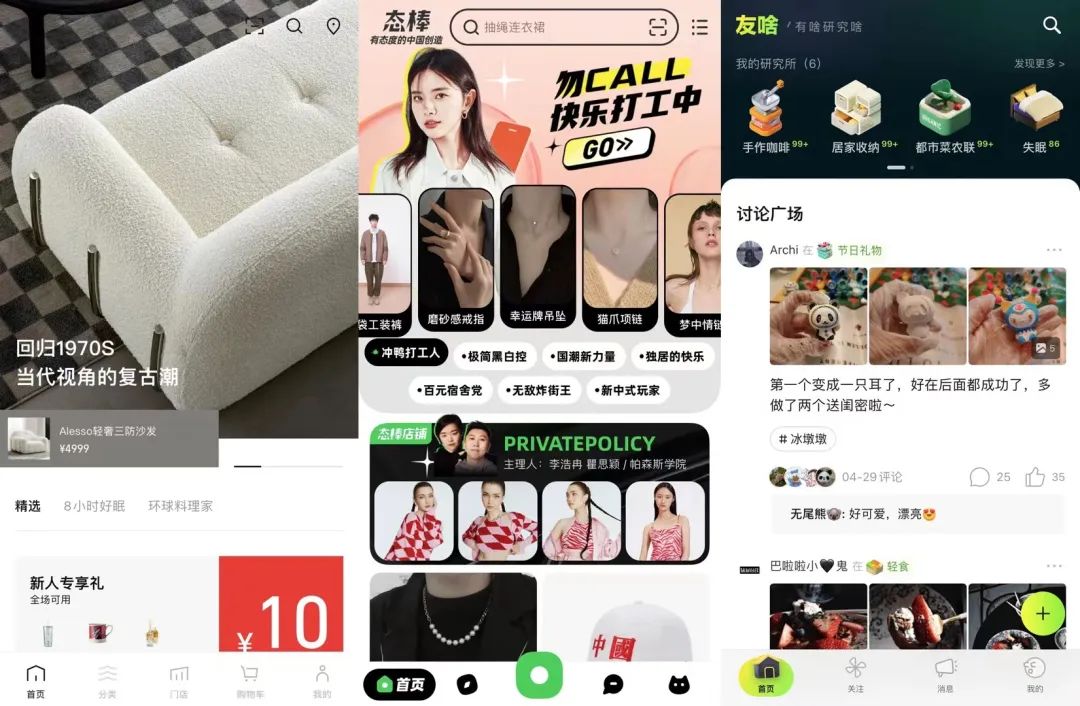 不難理解,像是淘寶這樣的“超級”電商平臺流量池已然非常龐大,用戶增速勢必會逐漸放緩。再加之如今包括短視頻、社區(qū)等各類平臺紛紛進行電商建設,可以說幾乎是全平臺電商化,這一賽道競爭也是異常激烈。在這一背景下,阿里有必要去結合潮流內容、社交等來嘗試做更多內容電商產(chǎn)品。而單獨做APP,即不會讓主APP增加負擔,避免影響平臺生態(tài)和用戶體驗,還可能會因為創(chuàng)新找到新增長點。
