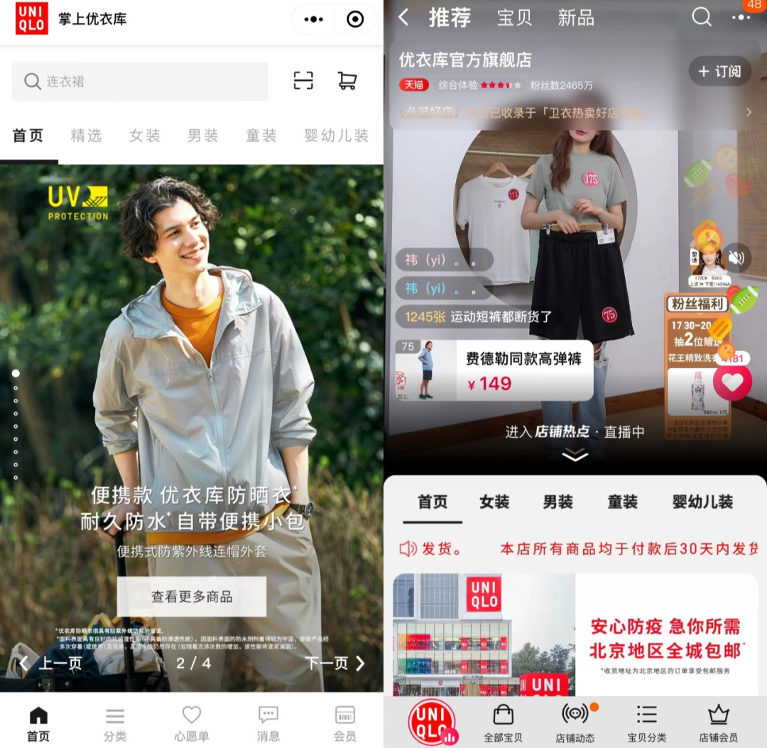 優(yōu)衣庫在2009年就開始做了天貓渠道,在2018年就做了小程序渠道。所以在Gap敗退,Inditex關(guān)店的同時(shí),優(yōu)衣庫在中國活得還不錯(cuò),但它在數(shù)字化上的領(lǐng)先僅限于外資服裝品牌這個(gè)圈里,若是考慮到互聯(lián)網(wǎng)裹挾的國潮品牌,它就沒有那么出眾了。