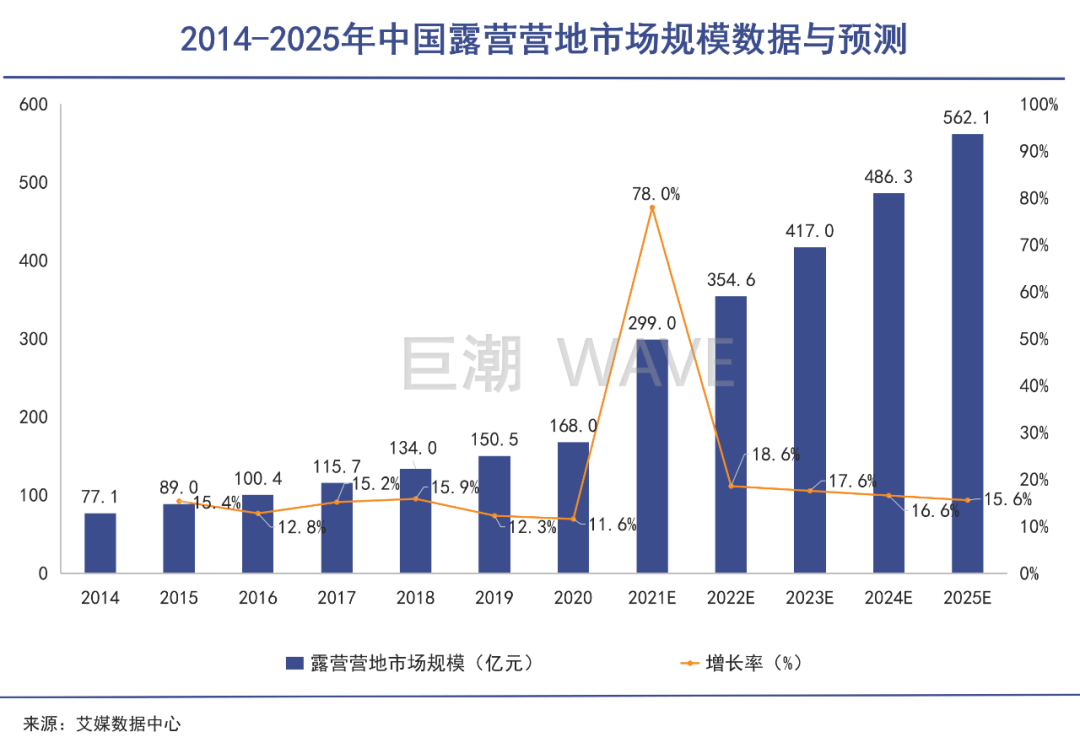 人們被疫情壓抑了的旅游需求,在露營市場得到發(fā)泄。根據艾媒咨詢發(fā)布的《2021-2022年中國露營經濟產業(yè)現狀及消費行為數據研究報告》顯示,在疫情基本得到緩解的2021年,露營市場全面爆發(fā)。