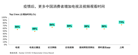 同時(shí),根據(jù)凱度的追蹤數(shù)據(jù)可見,隨著人們的居家時(shí)間不斷增加,持續(xù)推動(dòng)消費(fèi)者對(duì)電視,在線視頻等的使用增加。