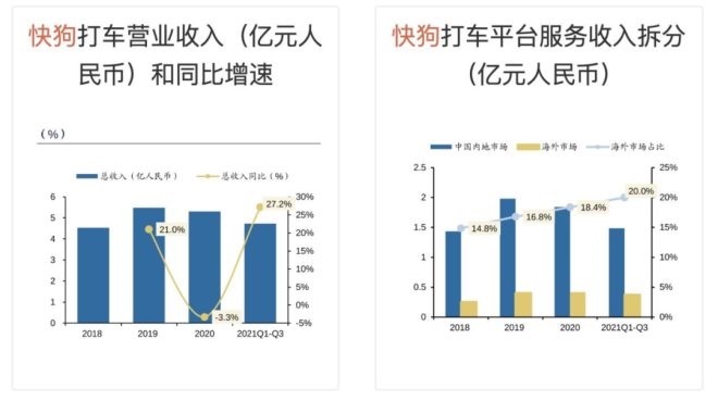從招股書數(shù)據(jù)披露,快狗打車由于其香港地區(qū)和海外地區(qū)運營的GOGOX進入市場較早,占有一定的領先地位,知名度較高。且由于進入海外市場較早,對于當?shù)卣叩容^為熟悉,2018年至2021年,海外市場的市場份額和交易量逐年提高,為營業(yè)收入的提升做出重要貢獻。