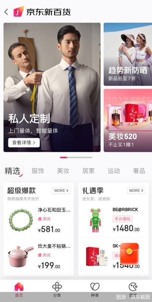 5月9日,京東App新增“新百貨”頻道。據(jù)悉,京東已完成對(duì)服飾、居家、美妝、運(yùn)動(dòng)、奢品鐘表等業(yè)務(wù)的整合,現(xiàn)有時(shí)尚居家業(yè)務(wù)全面升級(jí)為“京東新百貨”。