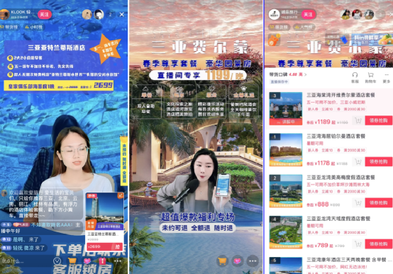 除了景區(qū)之外,酒店也是旅行期貨的重要品類之一。三亞亞特蘭蒂斯、費爾蒙等多個豪華酒店,也在直播間中被帶貨主播爆出了“低于某程、某豬的最低價”。同時,為了增加消費者的安全感,在抖音的直播間中還專門注明了“五一、端午出行,不加價!钡某兄Z。