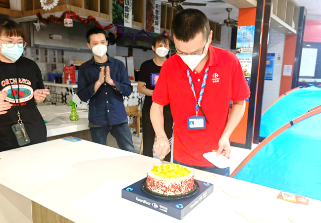 他有些感慨:“從武漢過來時(shí)38,回家時(shí)就又長(zhǎng)大一歲了”,這一天薛貝多多少少有些想家,有些滄桑,有些感動(dòng),更有無盡的愛與責(zé)任。家樂福會(huì)員店在得知武漢馳援同事生日后,更是精心制作了蛋糕傳達(dá)甜蜜感恩。