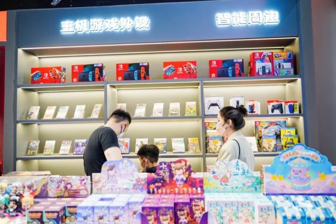 該店集結(jié)了聯(lián)想、惠普、Pico、任天堂等眾多品牌的潮玩裝備,為消費者打造了一個沉浸式、體驗式、互動式的線下消費新場景。