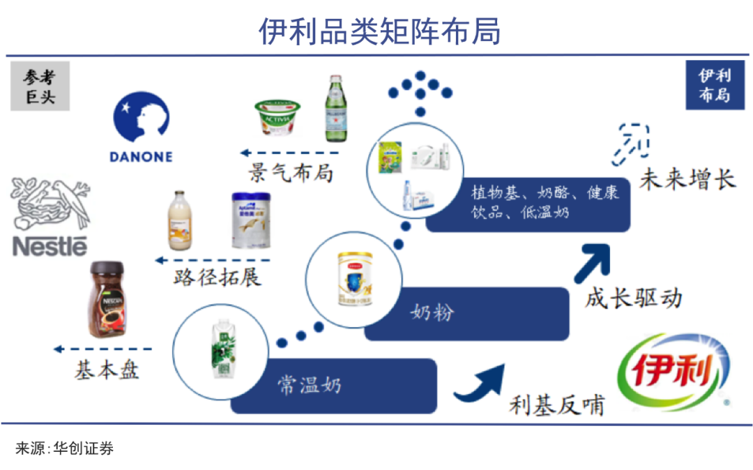 目前來看,伊利品類豐富度和品牌力還不如雀巢,但已搭建了較為清晰的產(chǎn)品體系。