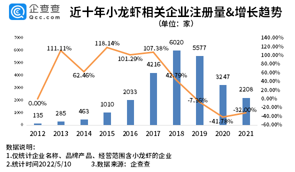 1、2021年新增小龍蝦相關(guān)企業(yè)2208家