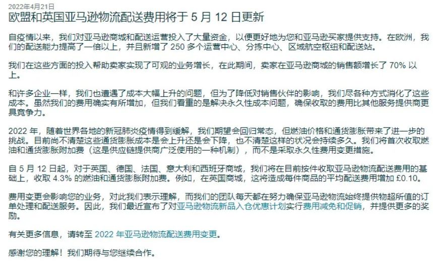 5月12日,英國和歐盟亞馬遜物流配送費又要上漲,這將是今年來的第三次費用上調了。但這樣的方法真的行得通嗎?