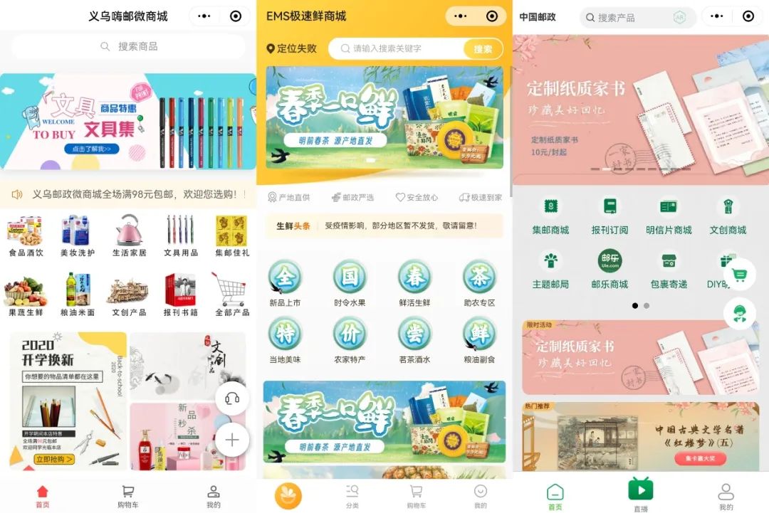 與當(dāng)?shù)厣碳业暮献鳎瑸猷]政積攢了不少商品供應(yīng)鏈,郵政官網(wǎng)和EMS急速鮮商城、義烏嗨郵微商城等微信小程序,也一直做著電商業(yè)務(wù),涉足領(lǐng)域十分廣泛。