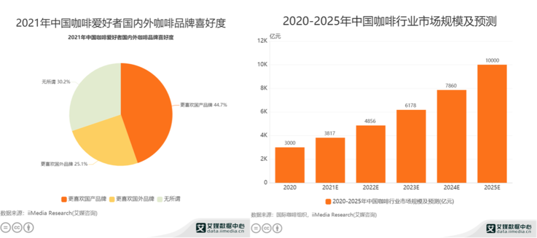 據(jù)艾媒咨詢預(yù)測,2021年中國咖啡市場規(guī)模約3817億元,預(yù)計(jì)保持27.2%的增長率,2025年中國咖啡市場規(guī)模將達(dá)10000億元。